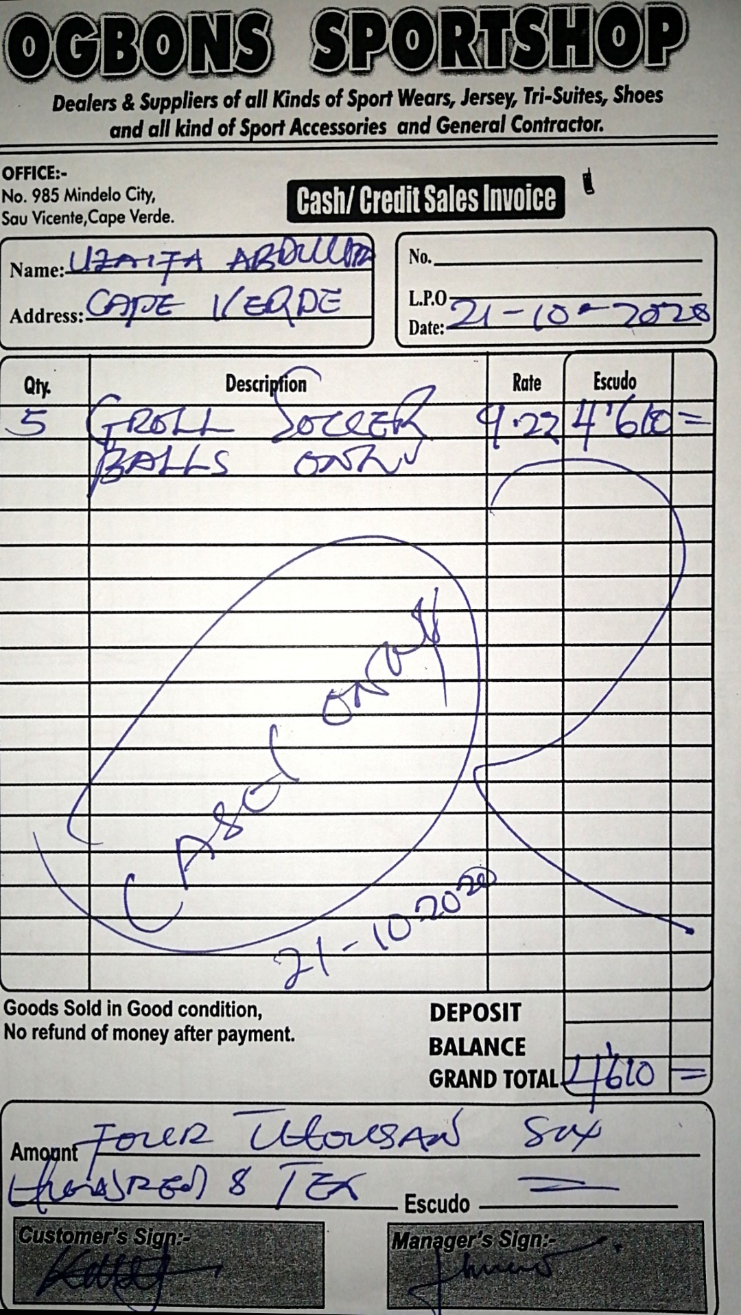Cabo Verde – Tarrafal – Mujasudeen Charity (King Fisher Village, Tarrafal, Cape Verde) Delivered on: 10/21/2020Balls Given: 5Delivered to: Mujasudeen Charity Delivered By Uzaif Abdulrazaq [Show slideshow] ◄12