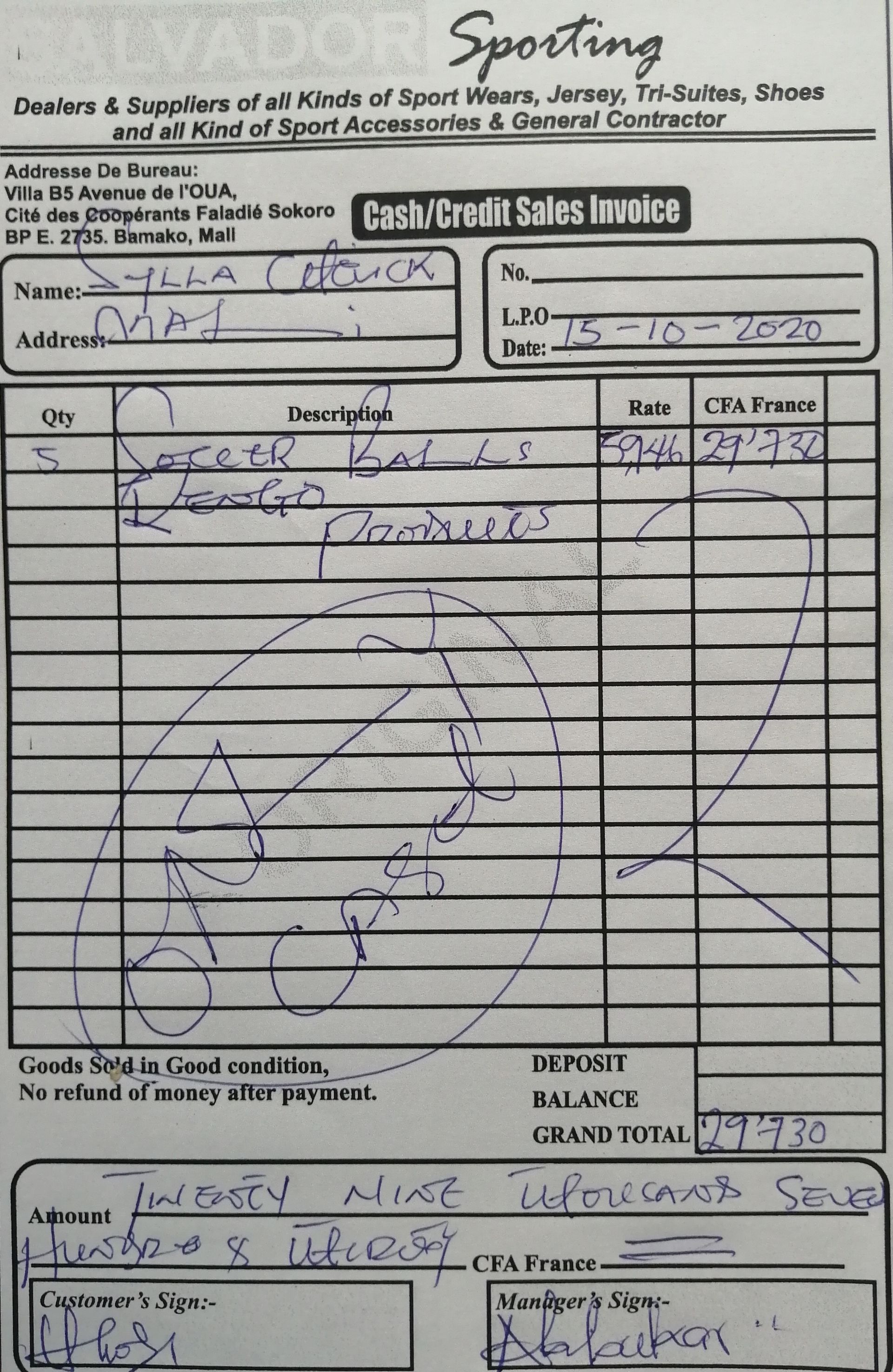 Mali – Gao – Seemaye Kids (Euro camping, rue527porte570,Aljanabadia, Gao, Gao, Mali) Delivered on: 10/17/2020Balls Given: 5Delivered to: seemaye kids Delivered By Sylla Cheick Fadel Maoulaye [Show slideshow]